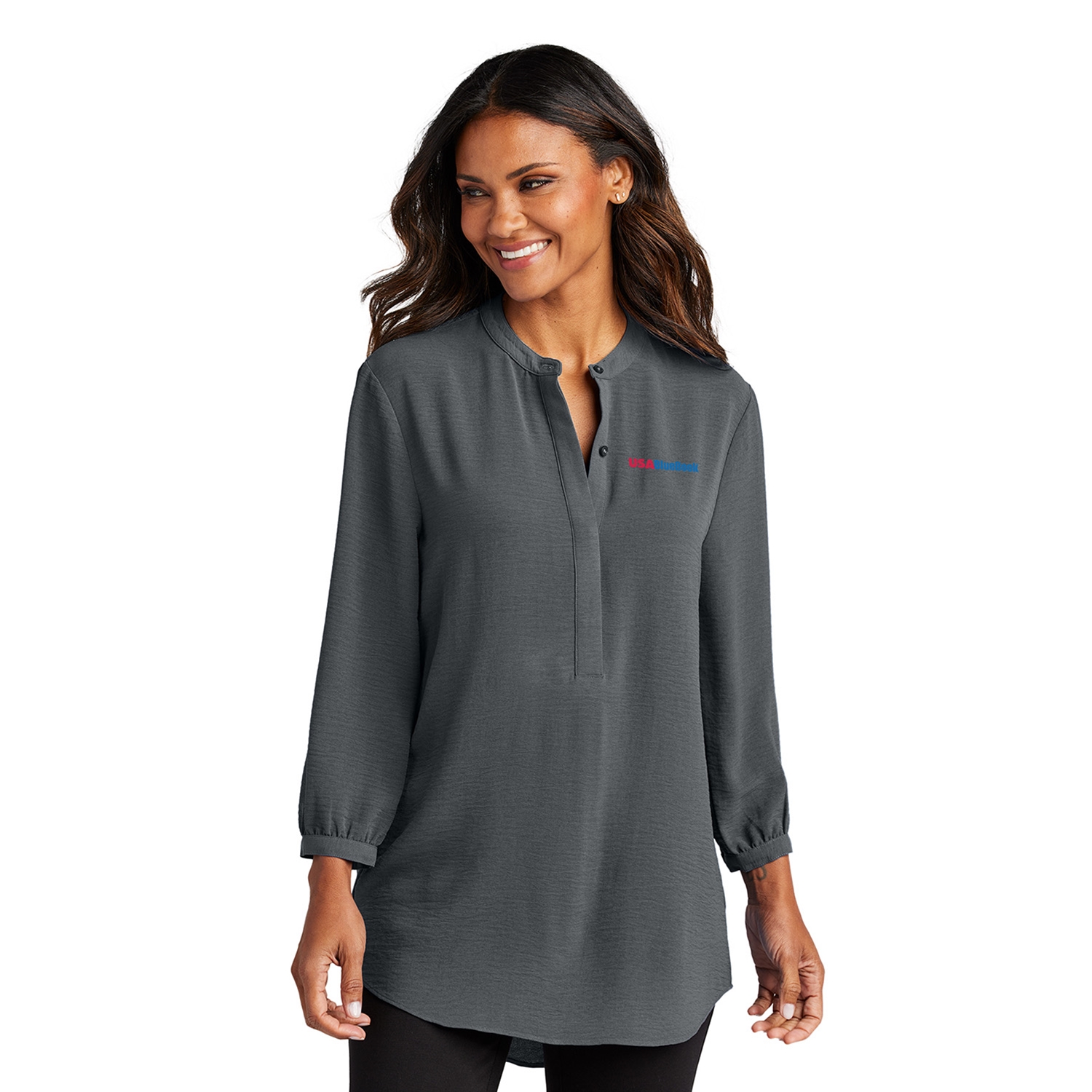 • 3/4 sleeves with single-button cuffs
